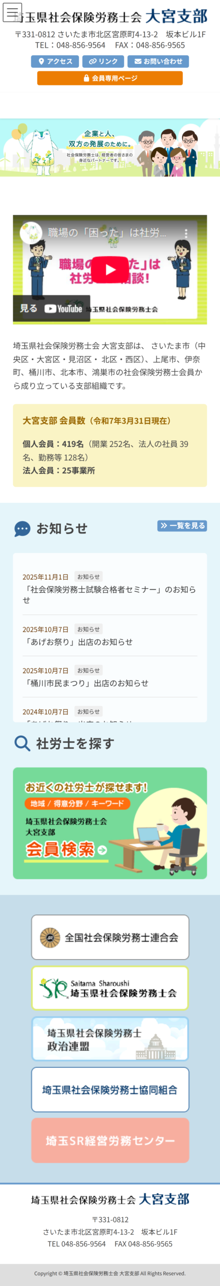 埼玉県社会保険労務士会大宮支部 2026年2月18日 最終更新日時 : 2026年2月18日 media PCサイト スマホサイト このプロジェクトのポイント ブロックパターンの活用によるコストダウン このプロジェクトでは、一からデザインを作成するのではなく、ブロックパターンの活用を通じて、制作にかかる時間とコストを大幅に削減し、クライアントは質の高いウェブサイトを予算内で実現できました。 現場撮影・ヒアリングによる採用情報ページ 採用情報のコンテンツに関しては現場のリアルな情報が求職者にとって非常に価値があるため、専門のカメラマンが現場で撮影を行い、スタッフからの直接のコメントを多数掲載しました。求人への応募意欲を高めるコンテンツに仕上がっています。